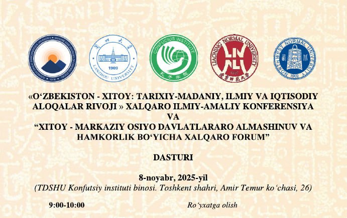 O‘ZBEKISTON - XITOY: TARIXIY-MADANIY, ILMIY VA IQTISODIY ALOQALAR RIVOJI » mavzusidagi xalqaro ilmiy-amaliy konferensiya materiallari 8-noyabr 2025-yil, Toshkent
